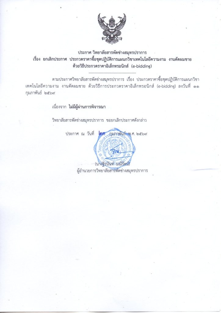 ประกาศวิทยาลัย ประกาศวิทยาลัย เรื่อง ยกเลิกประกาศ ประกวดราคาซื้อชุดปฏิบัติการแผนกวิชาเทคโนโลยีความงาม งานตัดผมชาย ด้วยวิธีประกวดราคาอิเล็กทรอนิกส์ (E-Bidding) Admin 23 กุมภาพันธ์ 202623 กุมภาพันธ์ 2026 Related posts:ประกาศวิทยาลัย เรื่อง รับสมัครบุคคลเพื่อเลือกสรรเป็นพนักงานราชการทั่วไป 2 ตำแหน่งประกาศศูนย์ทดสอบมาตรฐานฝีมือแรงงาน รายชื่อผู้มีสิทธิสอบ สาขาช่างแต่งผมสตรี ระดับ 1เปิดรับสมัครนักศึกษาใหม่ หลักสูตรระยะสั้น รุ่นที่ 156